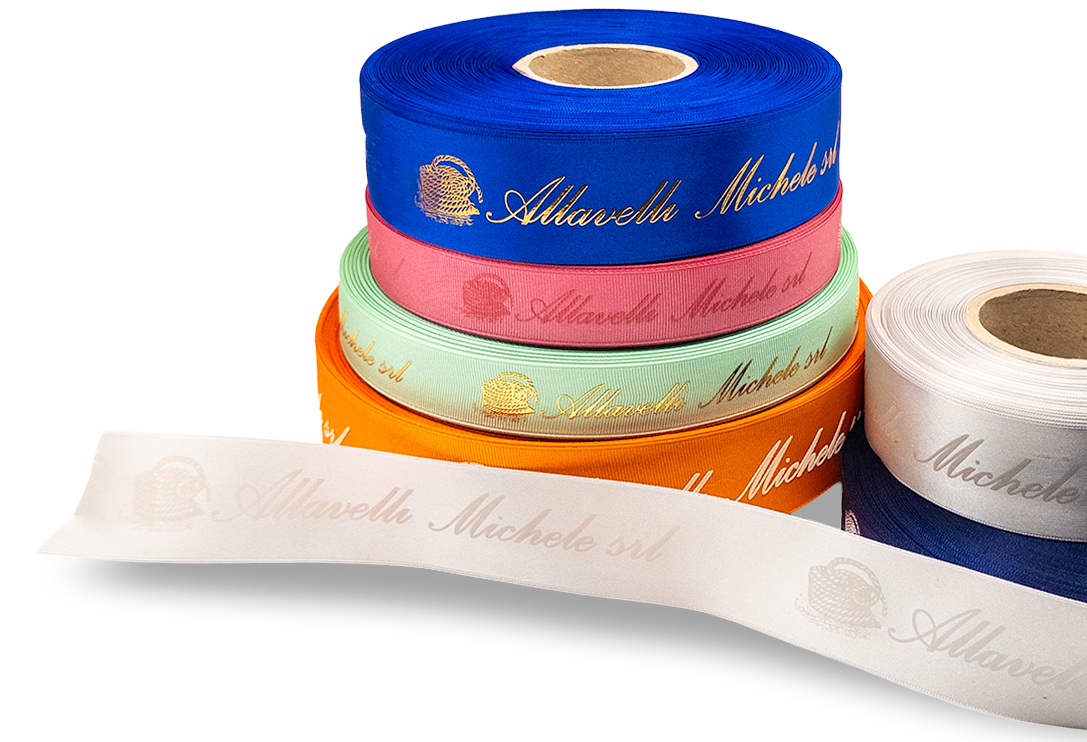 Realizziamo articoli personalizzati e nastri stampati. Produzione di nastri per tutti i settori industriali: nastri in cotone, in organza, nastri in raso, gros grain, nastri elastici, in poliestere personalizzabili con stampa e finiture come taglio a caldo e obliquo per bomboniere, articoli regalo, decorazione, sacchetti in carta e packaging, etichette moda, calzature e pelletteria.